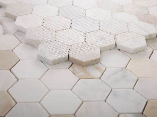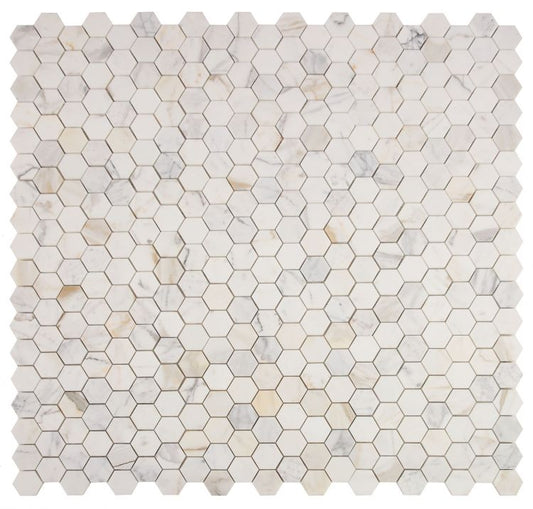 Elysium Tiles Hexagon Calacatta Gold Honed 2''x2''| 11.75'' x 12'' Mosaic Tiles