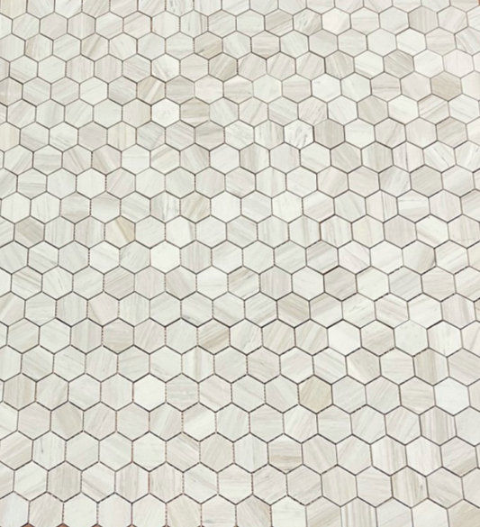 Elysium Tiles Hexagon Wooden White Honed 2 x 2 Mosaic Tiles