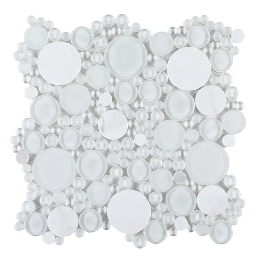 Elysium Tiles Water White Glass 11.50''x12.50'' Mosaic Tiles