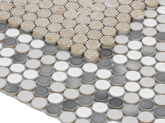 Elysium Tiles Penny Round Mixed Grey Glossy 11.50''x 12.25'' Mosaic Tiles