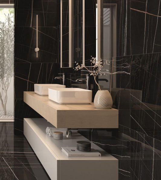 Elysium Tiles Noir Black Polished 24 x 48 Polished Porcelain Tiles