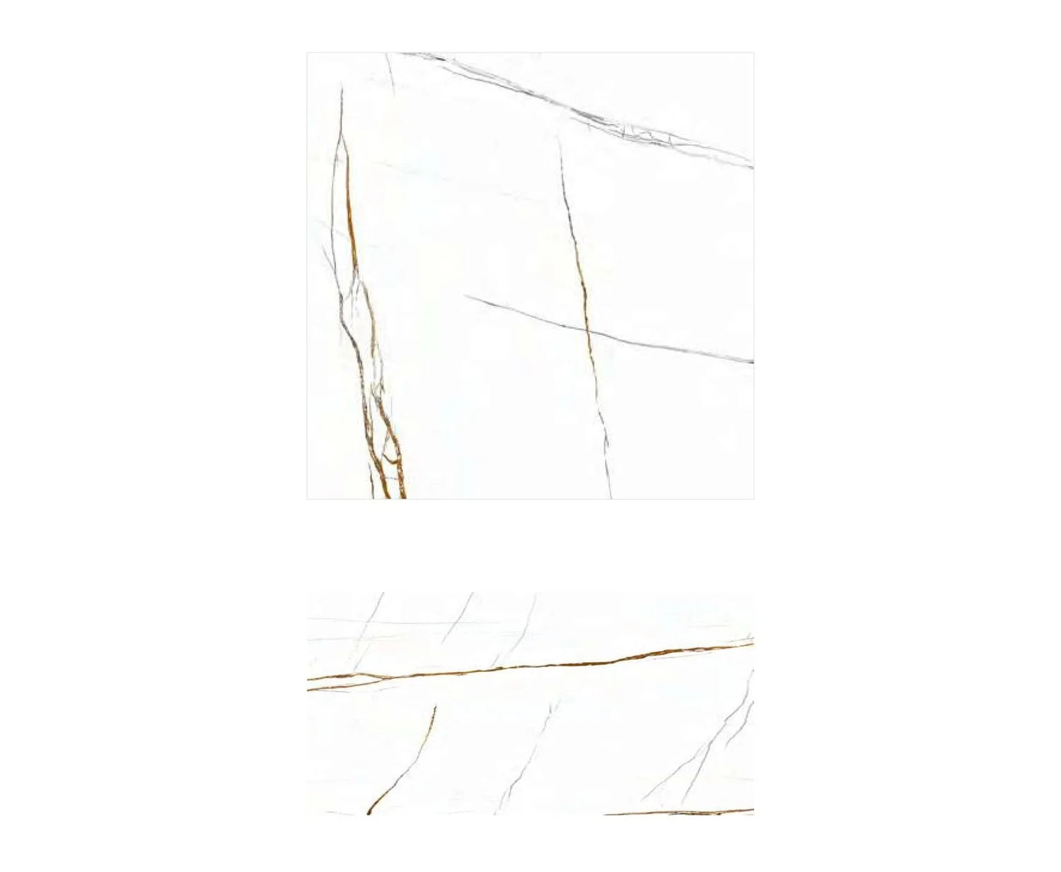 Bright white with fine gray veining and gold accents, this polished porcelain tile offers a luxurious marble-look ideal for upscale interiors.