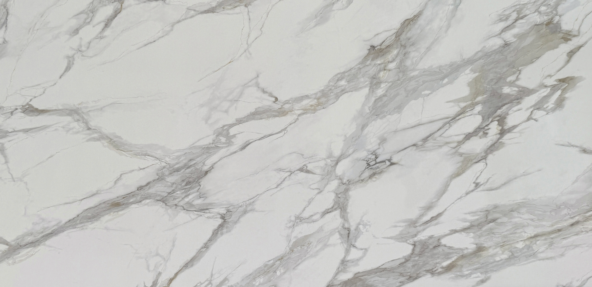 Introducing the Calacatta Giada Printed Quartz, a masterpiece from our new sub-brand, E Quartz. This stunning slab features advanced high-definition inkjet printing, replicating the intricate veining and natural beauty of Calacatta marble with remarkable accuracy. The creamy background is elegantly contrasted by grey veining, adding depth and sophistication to any space.