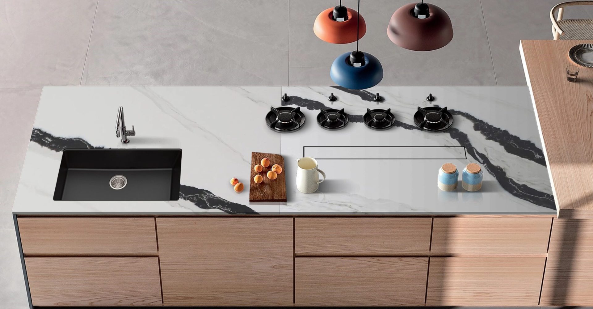 Affordable high-end looks and life-long durability come together in Panda Black Quartz. This polished marble-look quartz features a soft white background and widely spread veins for unstoppable elegance. It’s the perfect choice for creating white quartz countertops, ready to harmonize with nearly any color scheme or design style.